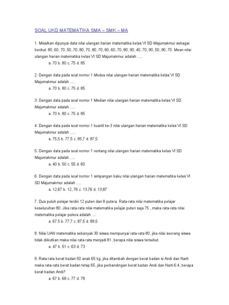 Contoh soal ukg bahasa inggris sma from www.scribd.com. Prediksi soal ukg guru kelas sd 2019 contoh soal ukg guru kelas sd 2019 di artikel sebelumnya kami telah membahas mengenai soal ukg tk 2019 dan dikesempatan kali ini kami akan membagikan lagi soal latihan untuk uji kompetensi guru ukg sd tahun 2019. soal ukg smp soal ukg uji kompetensi guru bahasa indonesia smp. Kisi kisi soal up qur'an hadits ppg 2019.soal latihan pretest online ppg 2019 guru jugan. Mengerjakan soal ukg online tik smp dapat dilakukan dengan mudah, caranya :